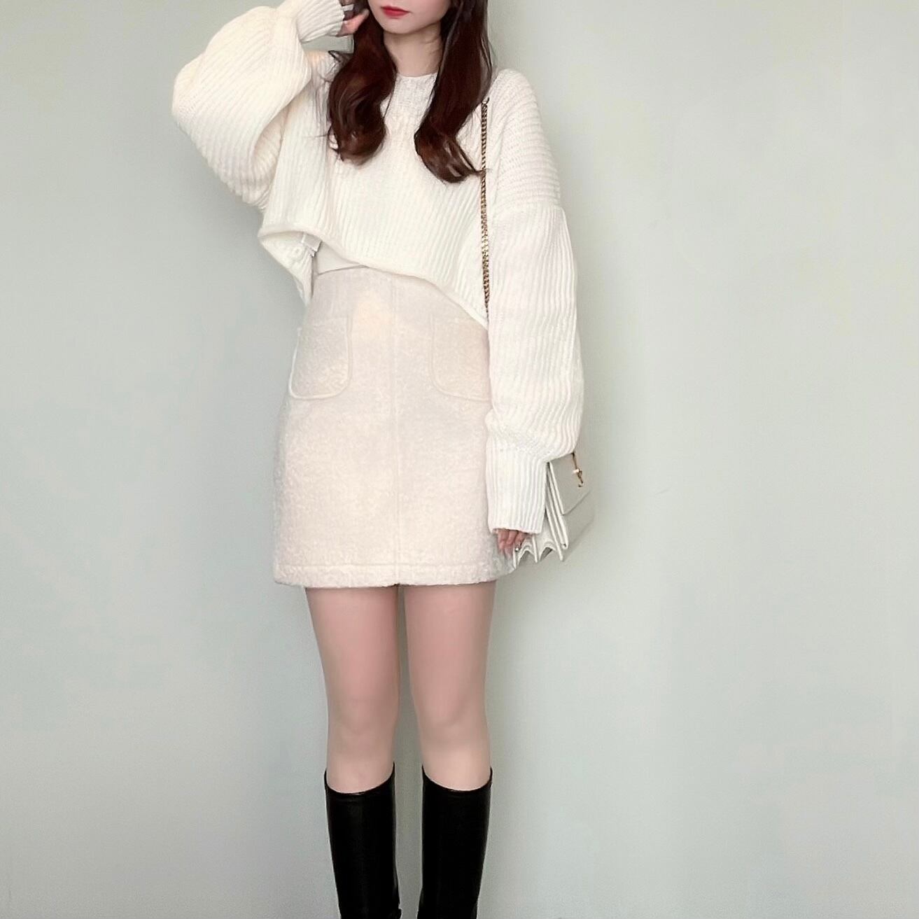 厚手のミニスカートが骨ストさんの体型に似合います◎